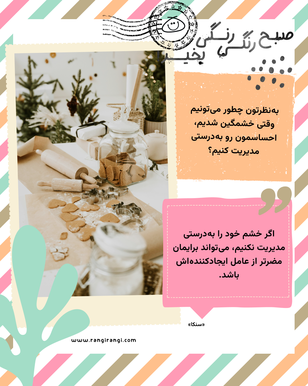 خشم یک احساس طبیعیه، اما اگر واکنش اشتباهی بهش نشون بدیم، می‌تونه مخرب باشه و اینجاست که روش‌هایی که برای مدیریتش داریم اهمیت پیدا می‌کنه. یادمون باشه هر حسی که تجربه کنیم، ایرادی نداره و اصلا همین احساسات بخش مهمی از انسان بودن ما هستن؛ اما پاسخی به اون‌ها میدیم خیلی مهمن و می‌تونن تاثیرات عمیقی روی زندگی ما داشته باشن.