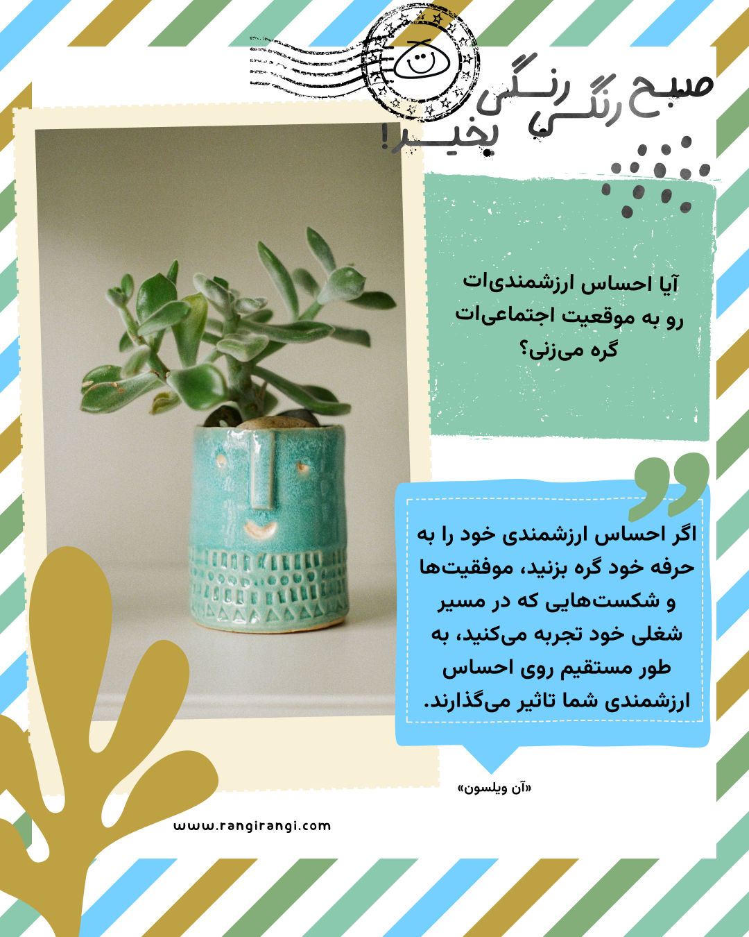 ما تو دنیایی زندگی می‌کنیم که دائم و به روش‌های مختلف سعی می‌کنه بهمون بقبولونه که ارزش ما وابسته به اینه که چه شغلی داریم، تعطیلاتمون رو چطور می‌گذرونیم یا سوار چه ماشینی میشیم. درسته که همه می‌دونیم این دیدگاه درستی نیست، اما گاهی اوقات این پیام‌ها انقدر تکرار میشن که ممکنه ناخواسته باورشون کنیم. صبح بخیر امروز رو به چشم یک یادآوری کوچیک ببینین: لازم نیست احساس ارزشمندی‌مون رو به دارایی‌ها یا موقعیت اجتماعی‌مون گره بزنیم.